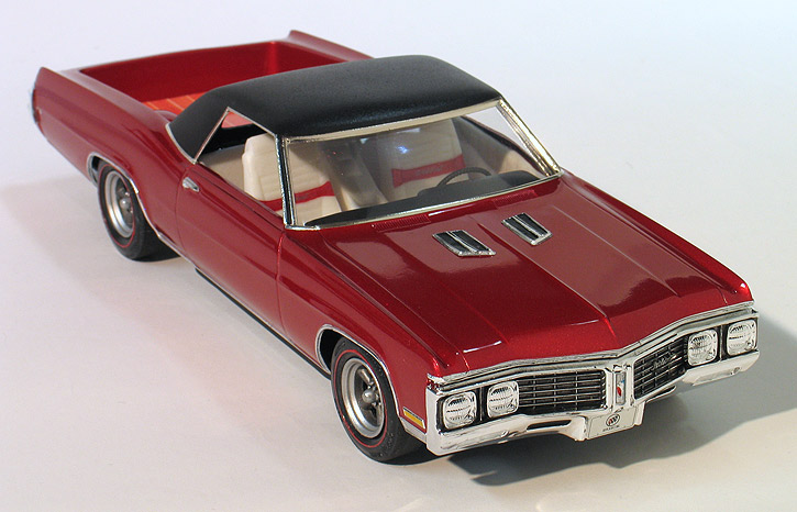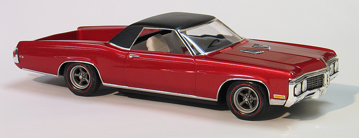 Number 5 in my series of '70 Buick Wildcat builds is this phantom pickup. I got the idea to build the Wildcat as a pickup while I was digging through the Model King / MPC '70 Pontiac Bonneville kit. The Bonneville is a convertible and I was planning to rob that kit for some parts to make a convertible Wildcat. While looking through the Bonneville I noticed the optional pickup bed parts in that kit and thought they might fit the Buick. A little eyeball engineering and I realized they could work - and the idea for this project was born.
