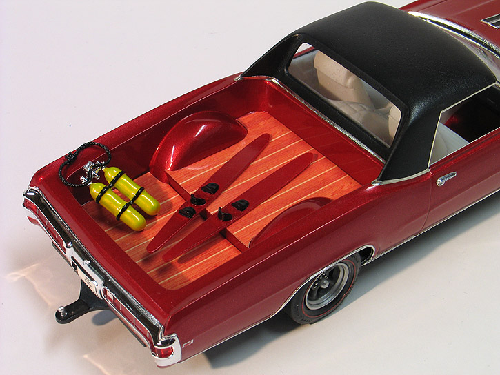 The Pontiac kit also provided the scuba tank and vintage water skis which I used to dress up the bed.