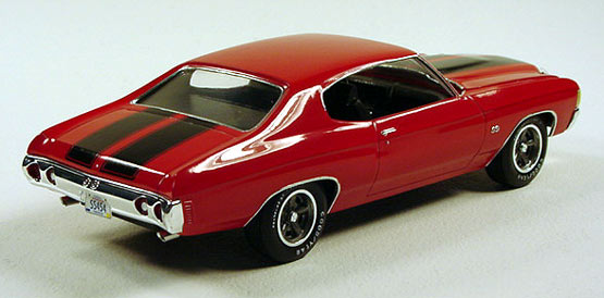 1972 Chevelle SS454 LS-6 - (built 1997) I built up this old AMT '72 "Red Alert" Chevy Chevelle kit as a factory stock muscle car by sourcing correct wheels from the Revell '78 Z-28 model kit and by using a set of Fred Cady decals. I also added photoetched hood pins and license plates I made on the computer.
