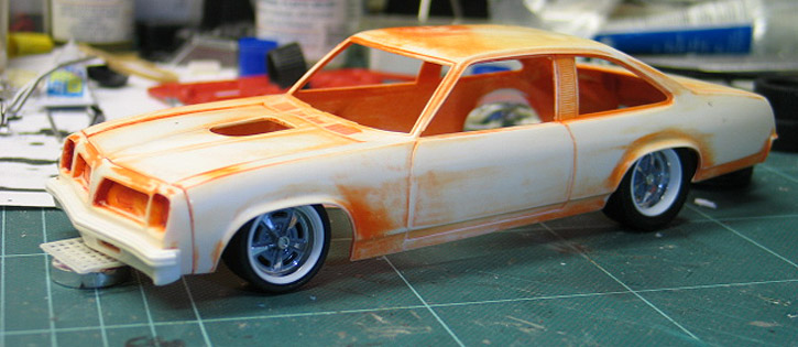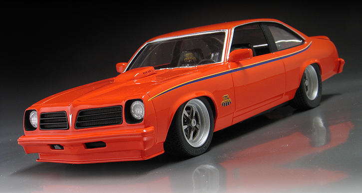 I have an extensive model car "boneyard" of old built kits which I rescued from various garage sales back in the '80's. Some of these are slated for restoration and others have been picked over for parts. A few others have been set aside for doing something a little more creative with. The parts of my MPC 1976 Pontiac Ventura had been rattling around in a dusty box for the last 20 years or so and I felt it was finally time for my Pontiac to get it's due. My goal for the Ventura was to make a modern interpretation of a GTO Judge with elements of hot rodding trends from the past four decades. Muscle car style from the '60's, a body from the '70's, rodding tricks from the '80's, '90's, & '00's and a stance straight from today.