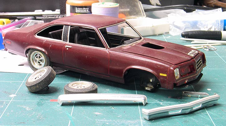 I think the 1976 Pontiac Ventura is one of those forgotten '70's cars that is ripe with street machine potential. The body has a nice simple design and has many of the classic Pontiac signatures such as the split grill, but it's a car you just don't see many people doing anything with. MPC also made several Pontiac Ventura model kits during the mid '70's and I rarely see those built either. So, I thought I'd take a crack at making a Ventura over into a cool