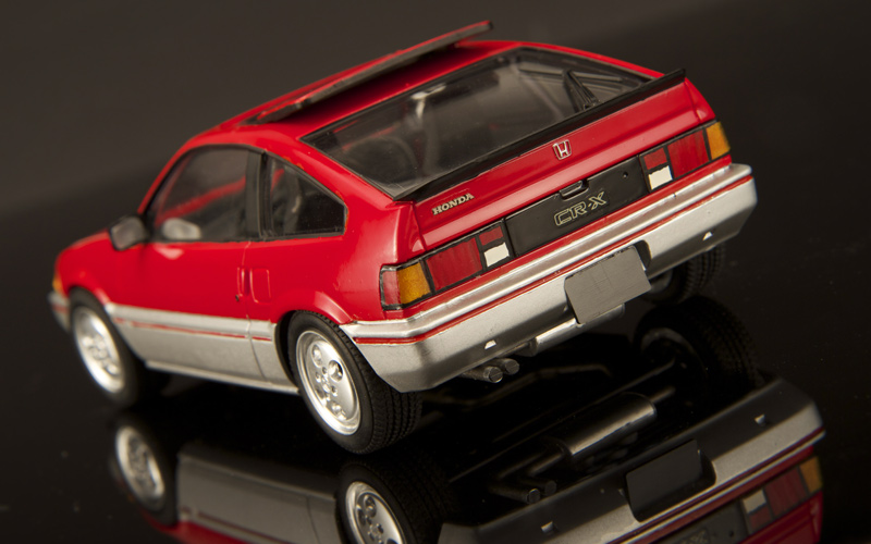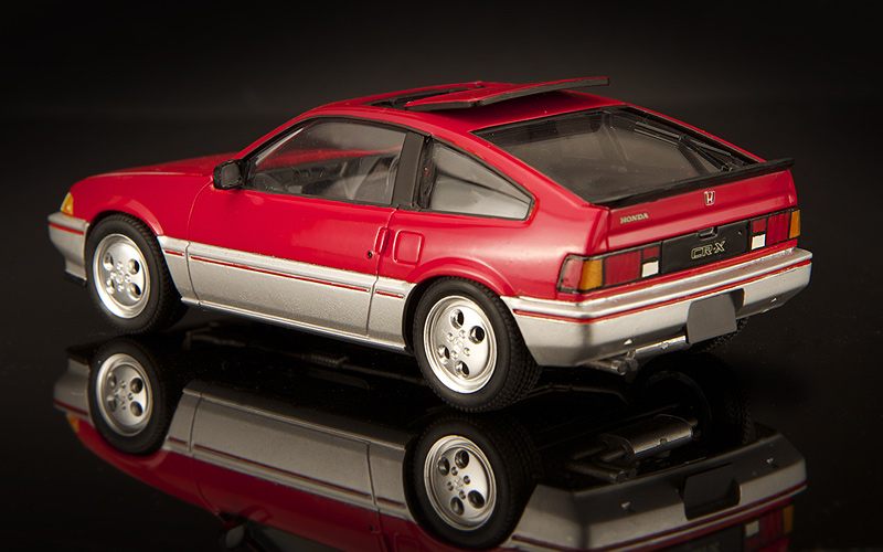 Back in '86, I built this replica of his Honda CRX for his birthday that year. I built it using the 1/25th scale Tamiya kit and built it straight out of the box. The Tamiya kit is very nice and is very close to my Dad's car except you'll notice it's a right-hand drive Japanese spec car and has the Japan market alloy wheels. American cars had a slightly different rectangular hole wheel design. The model sat in a plastic showcase on his dresser for 28 years before it finally got broken in an accident. I recently repaired the model and it will go back to stay with my Dad. While I had it, I also polished it up and photographed it for my web site. This CRX is one of my oldest surviving models. I hadn't really paid attention to the model for many years and I found it interesting to inspect it. It's a time capsule of sorts of where my modeling skills were back then. Here is a photo of my Dad's real 1985 CRX Si. Before my he sold it, I got to spend a few weeks driving it around the town where I live now. It still felt tight and solid. It was still the fun little car I had remembered and turned heads everywhere I went. For a short while I was 18 again.
