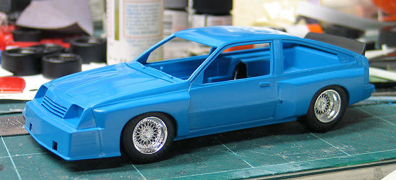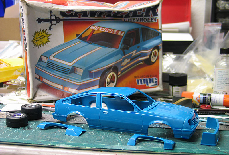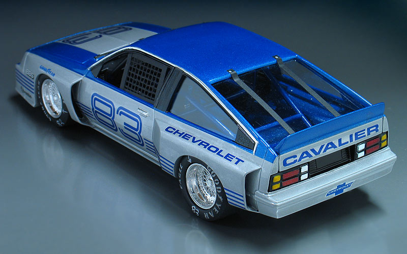I scored an mint unbuilt '83 MPC Chevy Cavalier kit on ebay a while back. I'd passed over this kit when it was new and I was a teenager. Cavaliers were boring to me back then. But I was feeling a little nostalgic and it was going for cheap. I'm also a sucker for anything unusual so I bought it. It's another kit that I rarely ever see anybody build which is reason enough for me to build one. Plus I grew up as a IMSA road racing fan during the '80's. The MPC kit came with a '80's style wide body kit and I thought it would make a neat vintage IMSA road racer. After doing some research I discovered Chevrolet never actually raced a Cavalier in IMSA, so I decided to make my little Chevy a "what if" fantasy car. So, here's what I imagine a factory sponsored Chevy would have looked like if they would have raced one back in '83.
