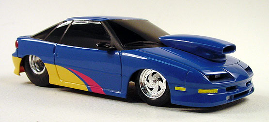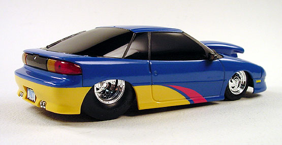 1991 Geo Storm pro street - (built 1993) Starting with an Ertl promo of a 1991 Geo Storm, I disassembled it and turned it into this pro street car. It's just a simple slam model with parts box wheels and a hood scoop. I also added alum. tube exhaust tips. In the '80s and '90s slam models were very popular but, I don't see people building them much anymore. This model was completed around 1993.