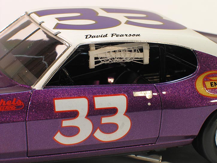 Other details include a scratch built window net, window straps, alum. tube exhaust and photo-etched hood pins. My GTO is just a simple curbside build but it fills a unique niche among my other NASCAR projects and I'm happy to have a replica of this piece of rare racing history on my shelf.