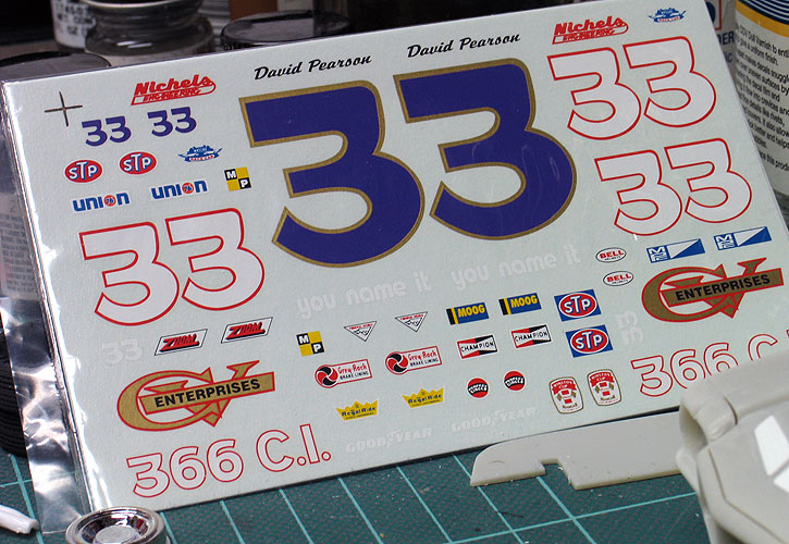 The body was painted using Testor's "plum crazy" metallic purple lacquer which is the correct color the real car was painted. The top was then masked and painted with Testor gloss white lacquer. For the number and sponsor graphics I used a decal sheet made by Dave Romero. These are nice quality silk screened printed decals that are unfortunately out of print. They can still occasionally be found on ebay though, which is where I got these. Afterward I clear coated the whole body with PPG concept 2000 urethane clear.