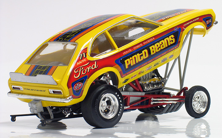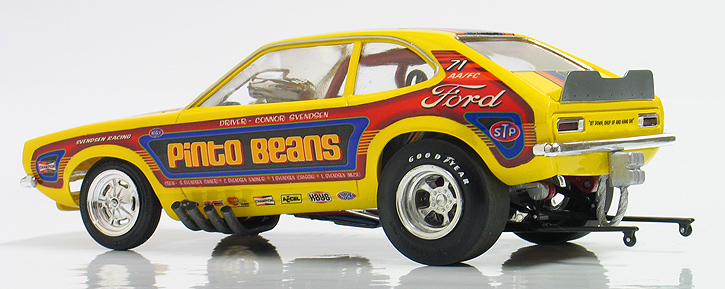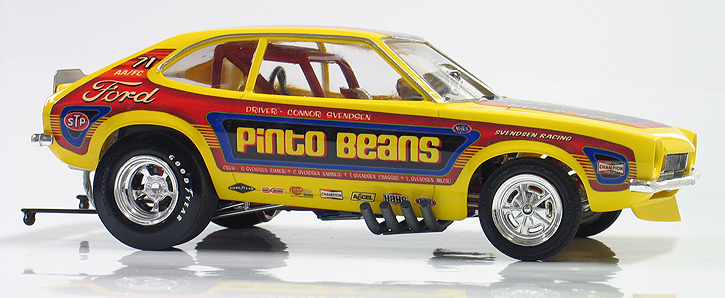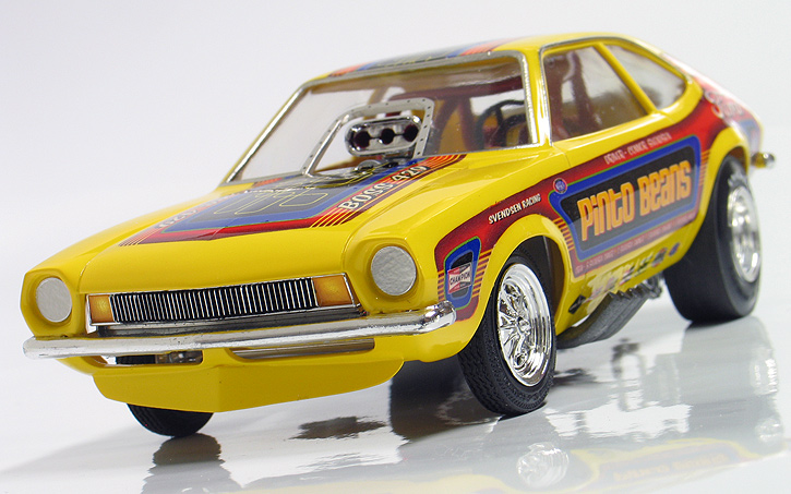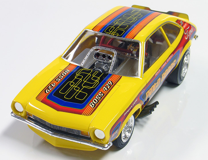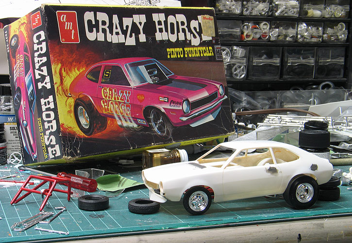 Every once in while I stumble across a cool & unusual kit going for a bargain on ebay. Such was the case with this AMT Crazy Horse '71 Ford Pinto funny car kit. It was half-built and had some parts were missing, but I thought I could save it. I made a bid and won the kit.